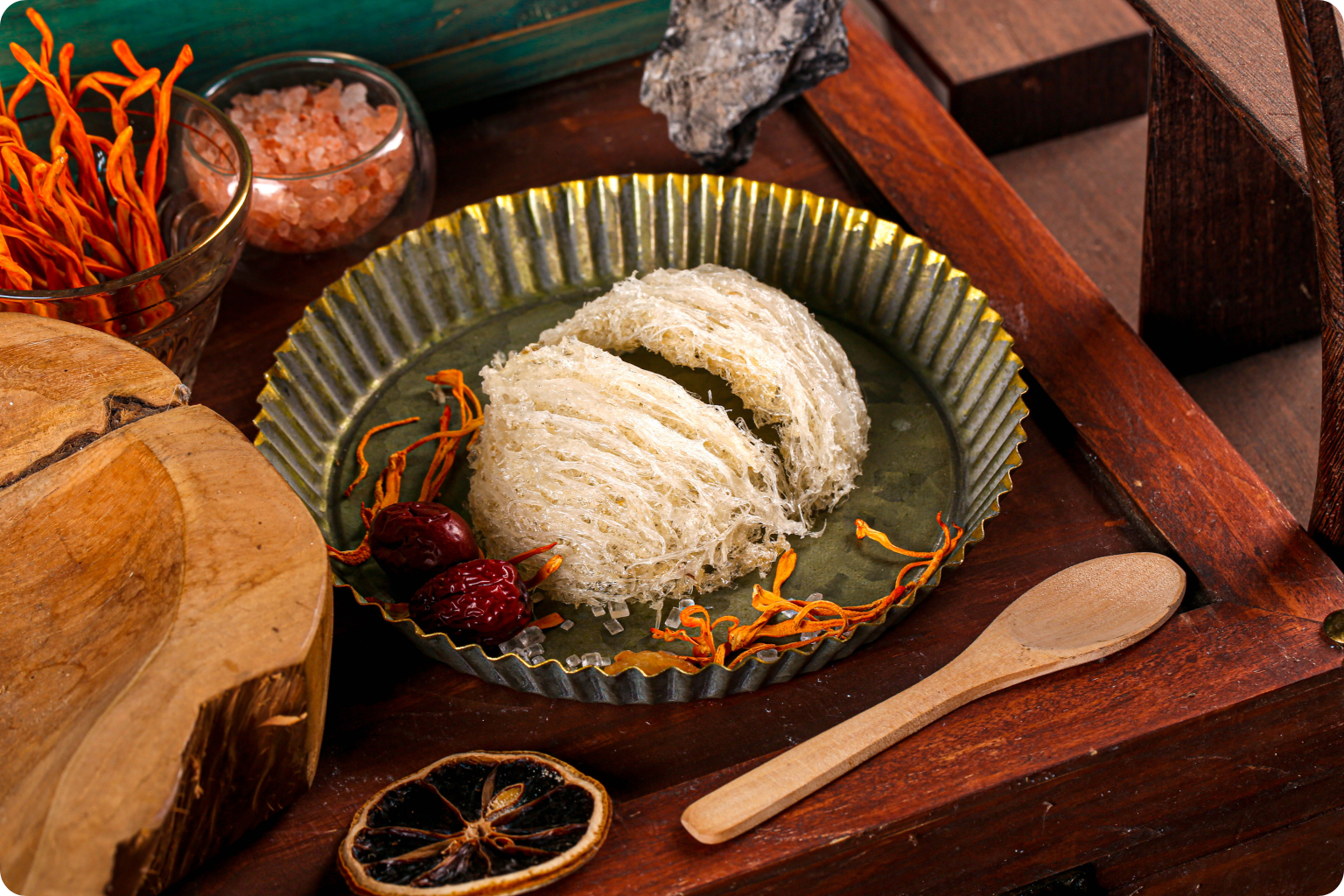 - Tổ yến ngâm nở, hấp cách thuỷ 20–25 phút.