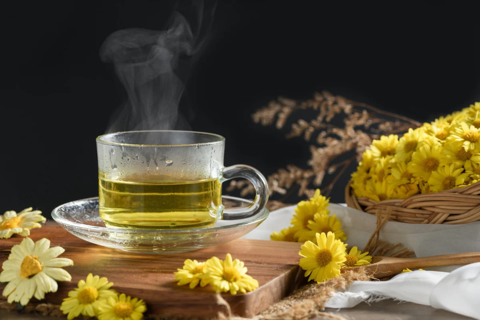 Trà hoa cúc không chỉ nổi tiếng với hương thơm dịu nhẹ mà còn bởi hàng loạt công dụng tuyệt vời cho sức khỏe: