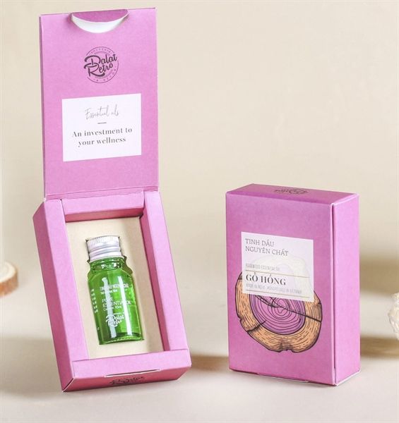 Tinh dầu nguyên chất, mẫu minimal, 10ml, gỗ hồng rose wood, hộp, Dalat Retro