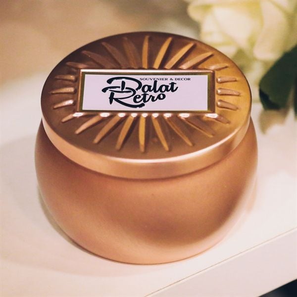 Nến thơm, 120g, hộp, mẫu hộp thiếc hoa văn, hương rose, Dalat Retro