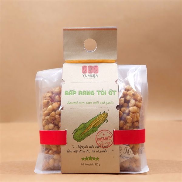 Bắp rang tỏi ớt, 450g, bịch, mẫu mawashi, Yumsea